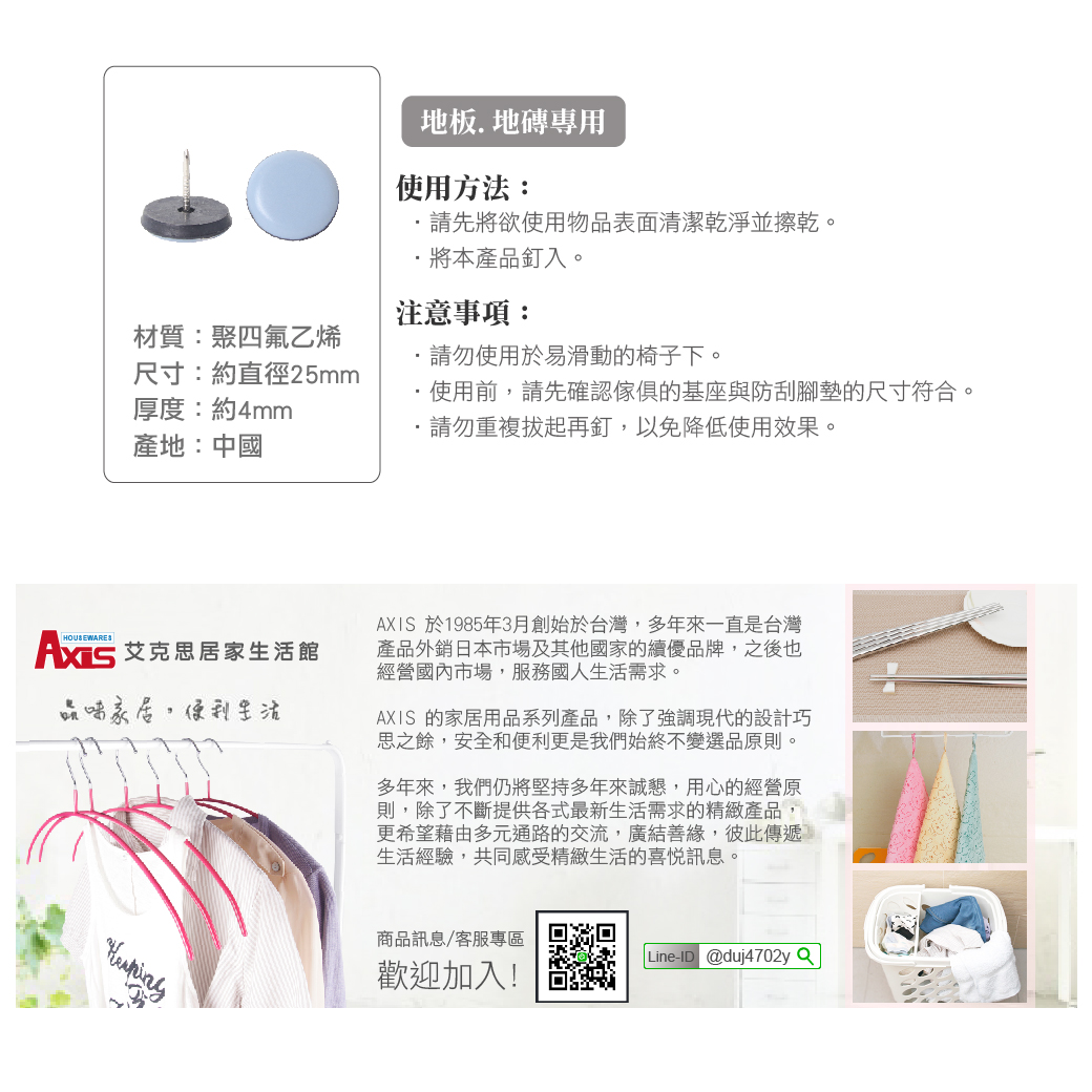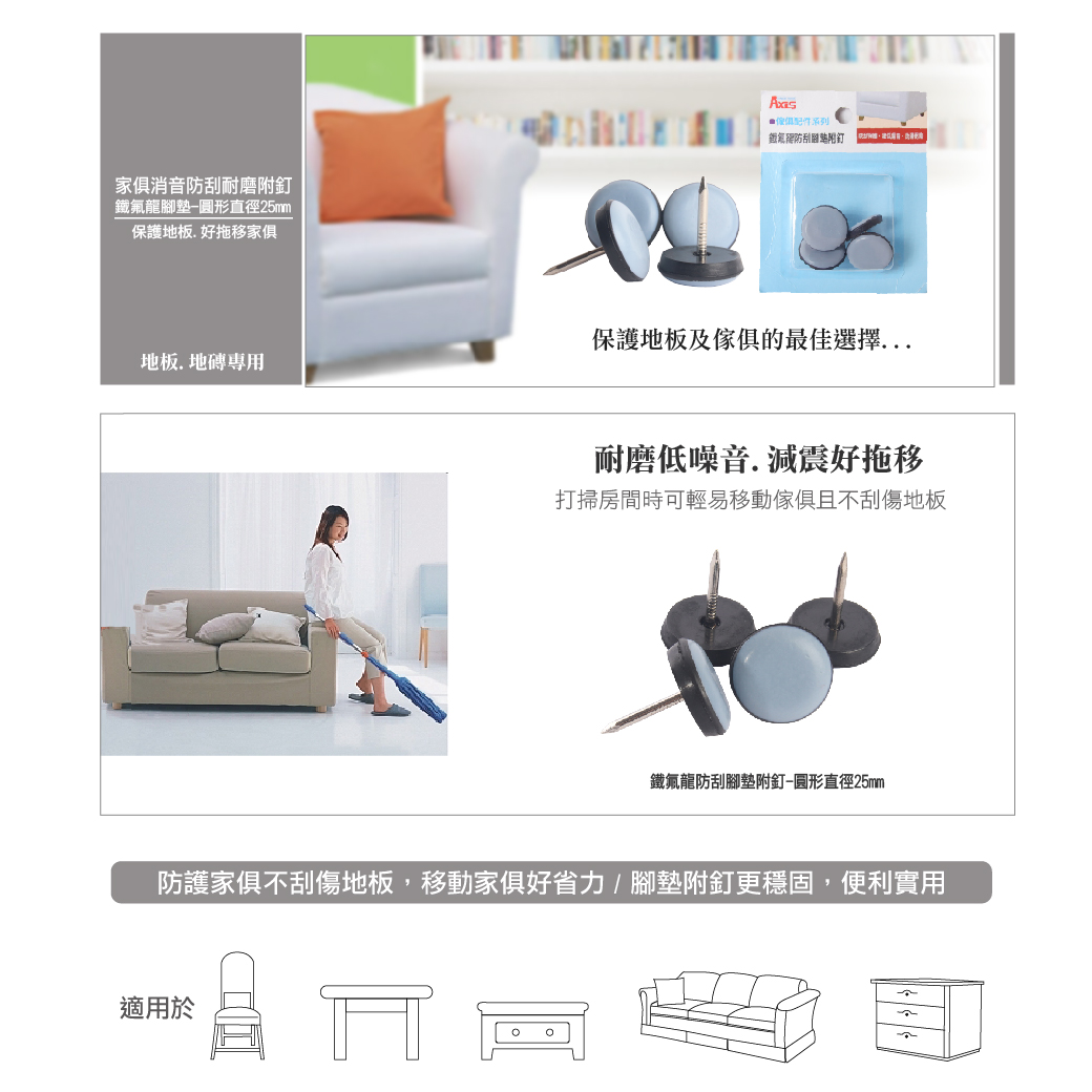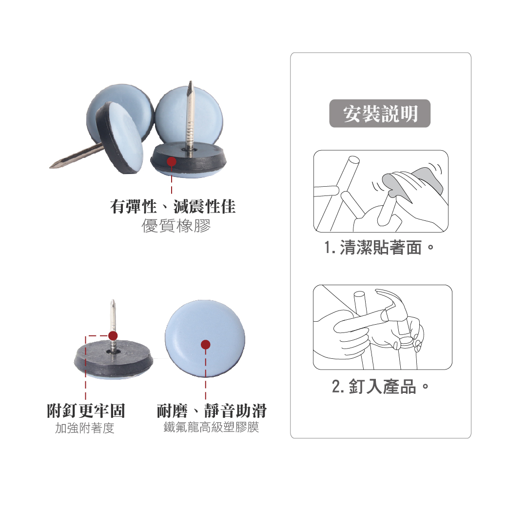 家俱消音防刮耐磨附釘鐵氟龍腳墊-圓形直徑25mm_4入