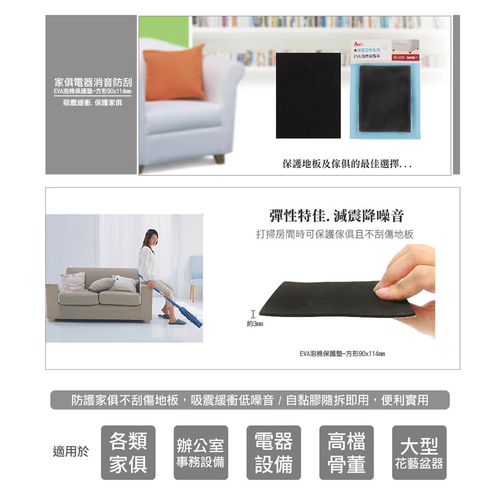 家俱電器消音防刮EVA泡棉保護墊-方形90x114mm_2入