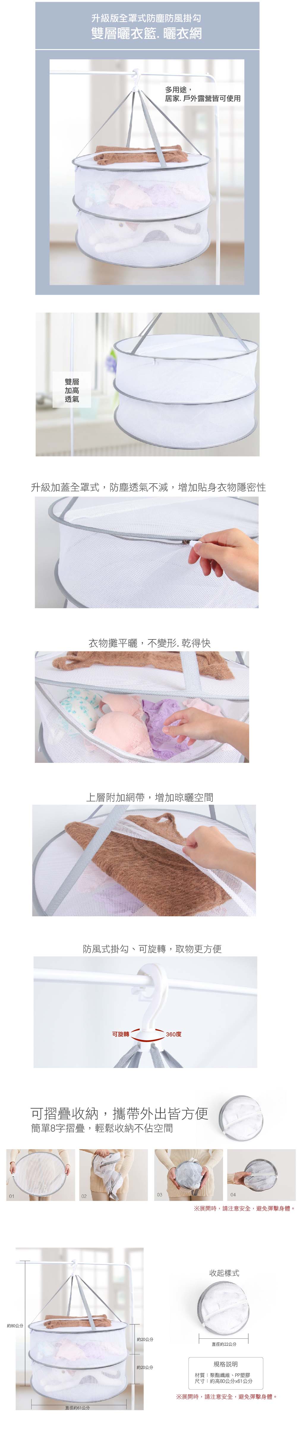 升級版全罩式防塵防風掛勾雙層曬衣籃.曬衣網_1入