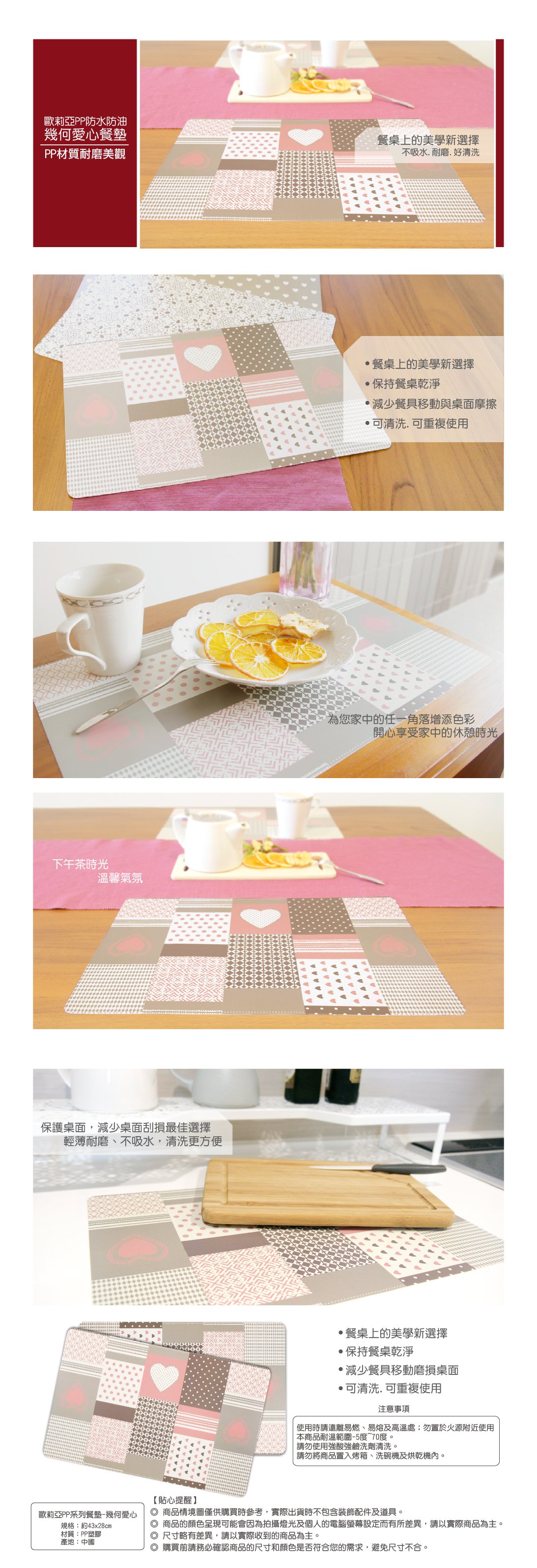 歐莉亞PP防水防油幾何愛心餐墊_2入
