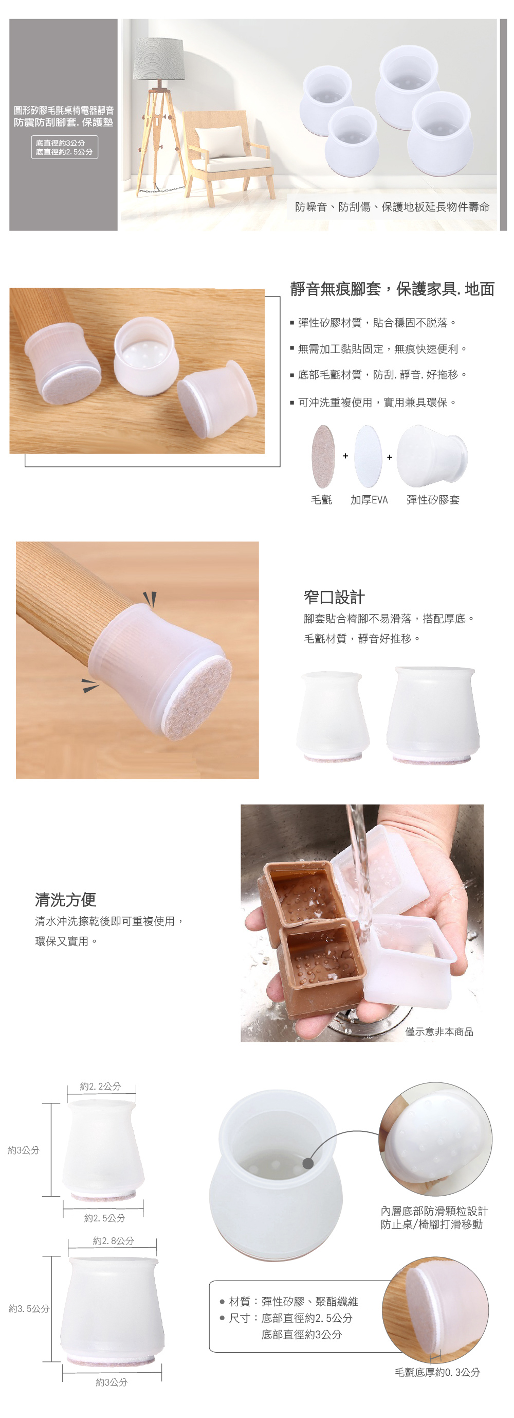 圓形矽膠毛氈桌椅電器靜音防震防刮腳套.保護墊_4入(直徑3公分)