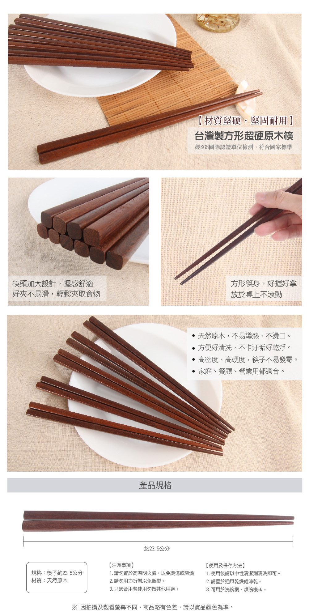 台灣製方形超硬原木筷_5雙入