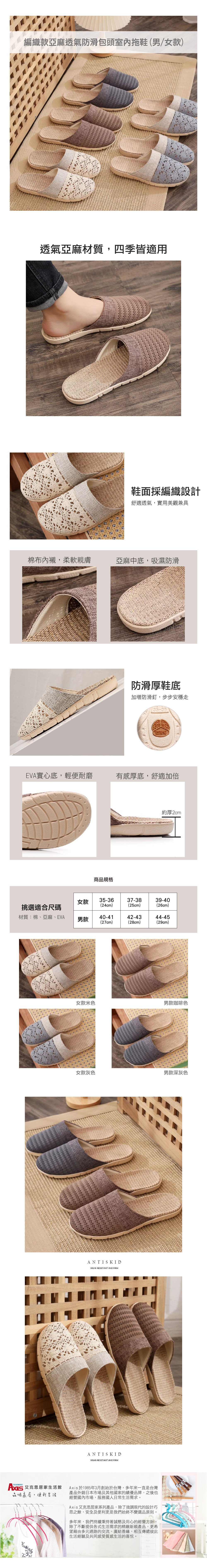 編織款亞麻透氣防滑包頭室內拖鞋(男/女款)_1雙