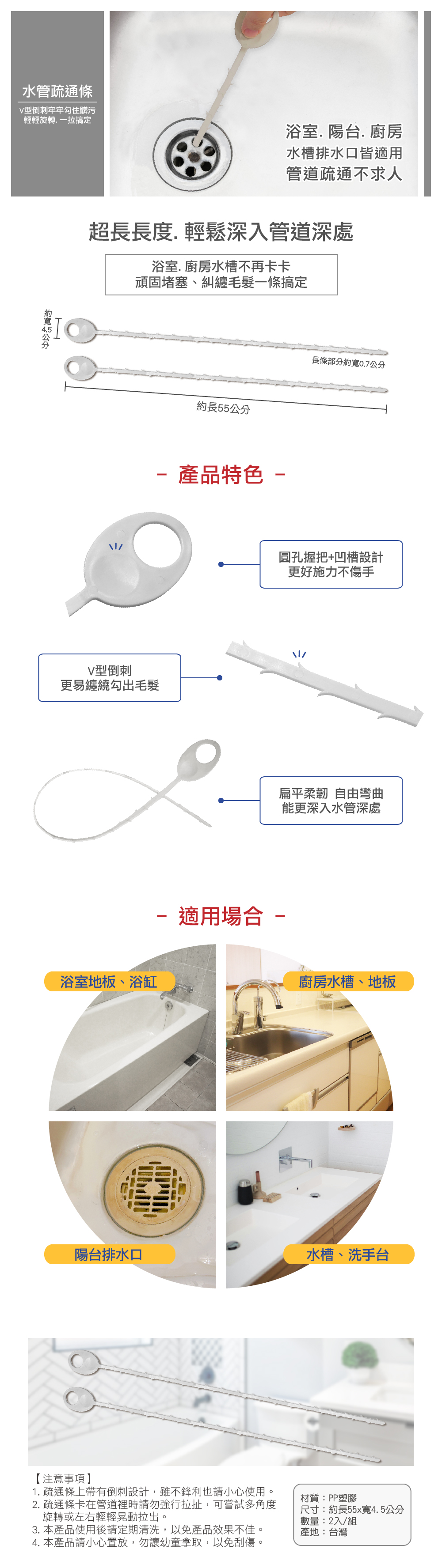 台灣製水管疏通條_2入組