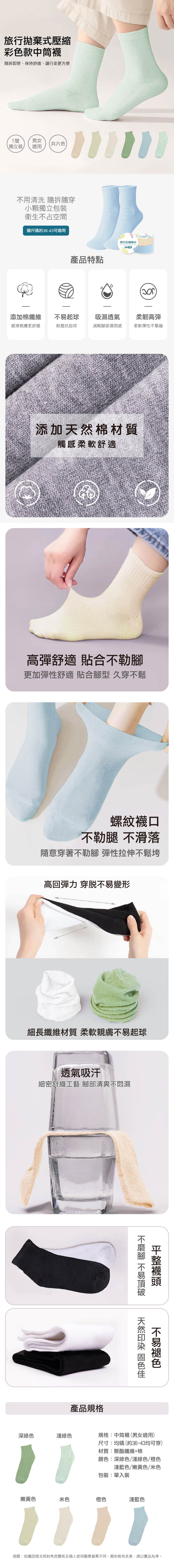 旅行拋棄式壓縮彩色款中筒免洗襪(單入包裝)_3雙