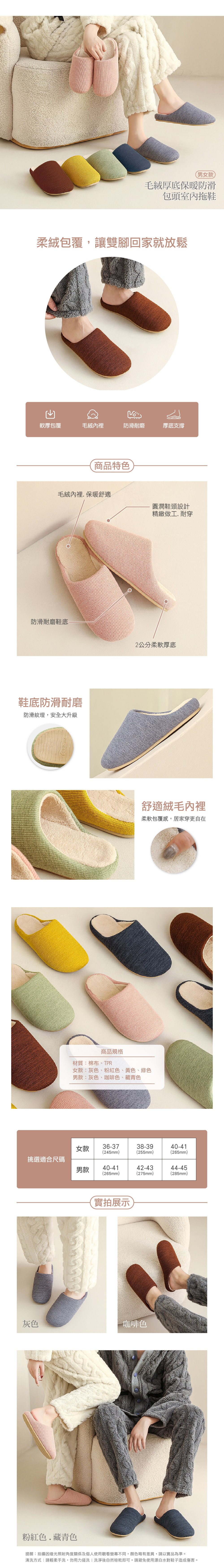 毛絨厚底保暖防滑包頭室內拖鞋(男/女款) _1雙